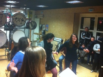 Pour terminer ce séjour en Bretagne, M. Maillard a sollicité Roland Becker pour une dernière conférence, avant que le Bagad Elven ne fasse une répétition publique. A l'issue de cette dernière, les étudiants ont pu échanger avec les sonneurs et découvrir les instruments. C'est alors que MM Becker et Maillard ont lancé un petit fest-noz improvisé. Les sonneurs d'Elven se sont alors fait un plaisir de montrer les pas des danses à leurs hôtes toulousains!
